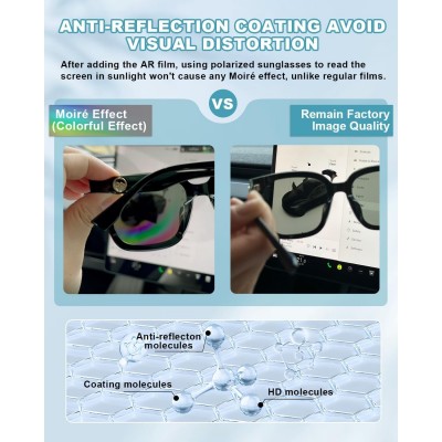 • 【Trasmissione della Luce del 98%】La nostra pellicola protettiva per lo schermo Highland utilizza una tecnologia di rivestimento anti-riflesso (AR) a due strati che offre una trasmissione della luce fino al 98%, garantendo un'eccellente visibilità in varie condizioni di illuminazione. Assicura inoltre che lo schermo non rifletta toni arcobaleno come un pannello di vetro trasparente quando si indossano occhiali da sole polarizzati (elimina l'effetto moiré) e fornisce al conducente una visualizzazione chiara e realistica.