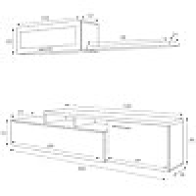 Dimensiones en CM - TV Puerta: Longitud: 200 Ancho: 41 Altura: 44 - Unidad de pared: 105x32h32 - estante: 95x21h3