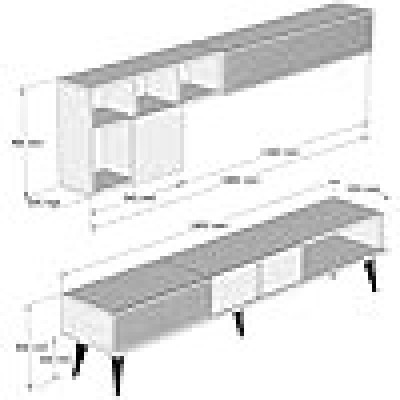 • STRUTTURA E UTILIZZO - La scelta dei vari mobili che formano questa composizione da salotto rende il design di questo articolo d'arredamento moderno, funzionale e salvaspazio - Oltre al posizionamento della TV potrete personalizzare la parete con i vostri soprammobili preferiti che rimarranno in esposizione sugli scaffali - Lo spazio all'interno delle ante è perfetto per riporre in modo ordinato i vostri libri, documenti, oggetti decorativi o stoviglie in modo ordinato e discreto - Set soggiorno perfetto per arredare un salotto, sala da pranzo oppure una stanza open space - Set con un'elegante fusione di design e funzionalità, perfetto per arredare il vostro soggiorno con stile e praticità