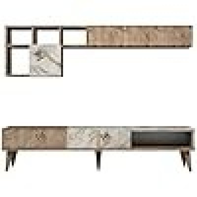 • Muro equipado: composición de la sala de estar, gabinete de sala de estar multipropósito, guardarropa de televisión, 180x35h40 cm, nuez y mármol blanco