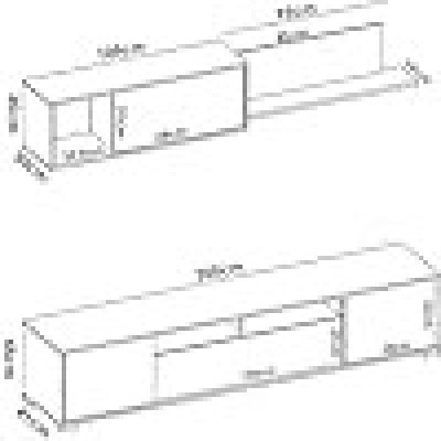 Dimensiones en CM - TV Gabinet: Longitud: 200, Ancho: 41, Altura: 42 - Unidad de pared: Longitud: 105, Ancho: 30, Altura: 35 - Estante: Longitud: 95, Ancho: 19, Altura: 28: 28
