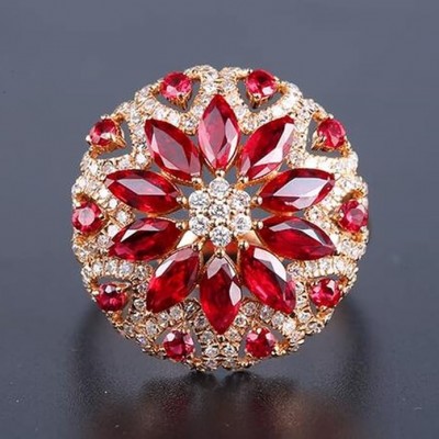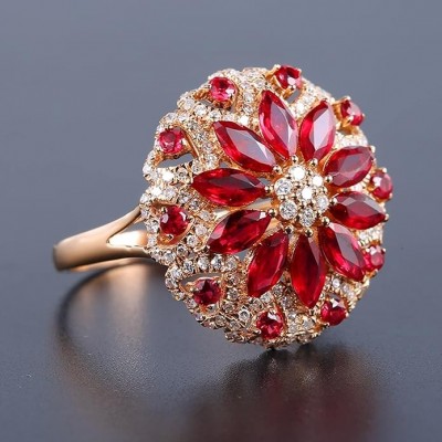 • ♥Material: oro amarillo de 18k; Peso: 3.29g; Tamaño de piedra principal: 2.1x3.6 mm; Piedra principal: Ruby Laboratory 2.21CT; Piedra lateral: Moissanite 0.49CT