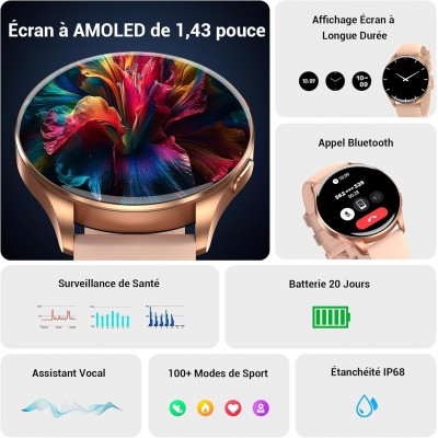 Mujer de relojes inteligentes Isowodo, reloj de fitness rastreador de 1.45