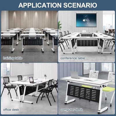 Tabla de conferencia Combinada libremente: nuestra tabla de conferencias plegable se puede mover y combinarse libremente, rompiendo el espacio de oficinas tradicional. Fácil de usar, puede juntar rápidamente una variedad de combinaciones para controlar fácilmente varios escenarios para satisfacer sus necesidades. Se puede utilizar como mesa de conferencias, mesa de capacitación, mesa de reuniones, mesa de recepción, mesa de enseñanza, mesa de oficina